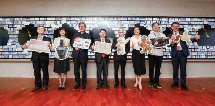 优游UB8携手创利空间为故宫建置的智慧文物互动导览墙及轮播墙,,,,今日正式启用。。。(左四:优游UB8新事业暨投资管理总部副总经理杨本豫、、右四:故宫博物院院长吴密察、、、右三:太极影音董事长黄宝云)